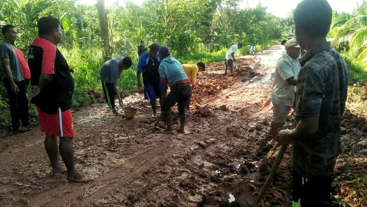 Namun demikian, kerusakan yang terlanjur parah membuat upaya warga tidak terlihat. Butuh gerak lebih besar untuk mengatasi kerusakan besar di jalan utama bagi warga di dua kampung ini, dari hanya mengandalkan peralatan seadanya.